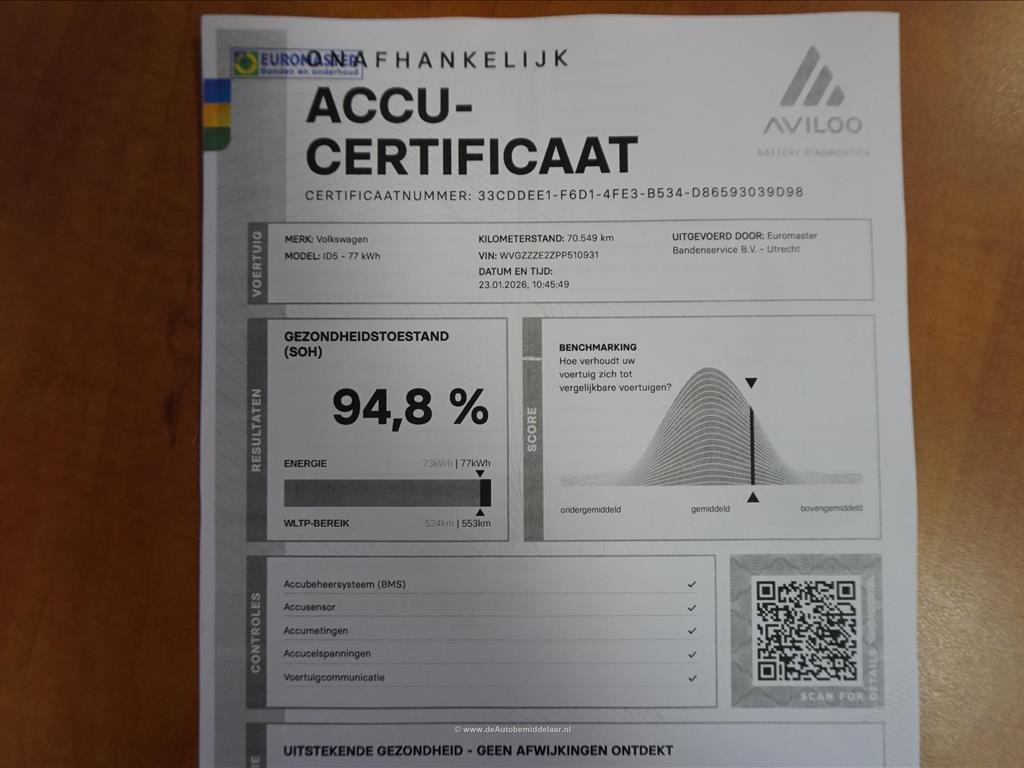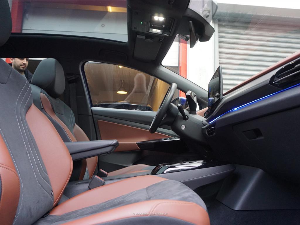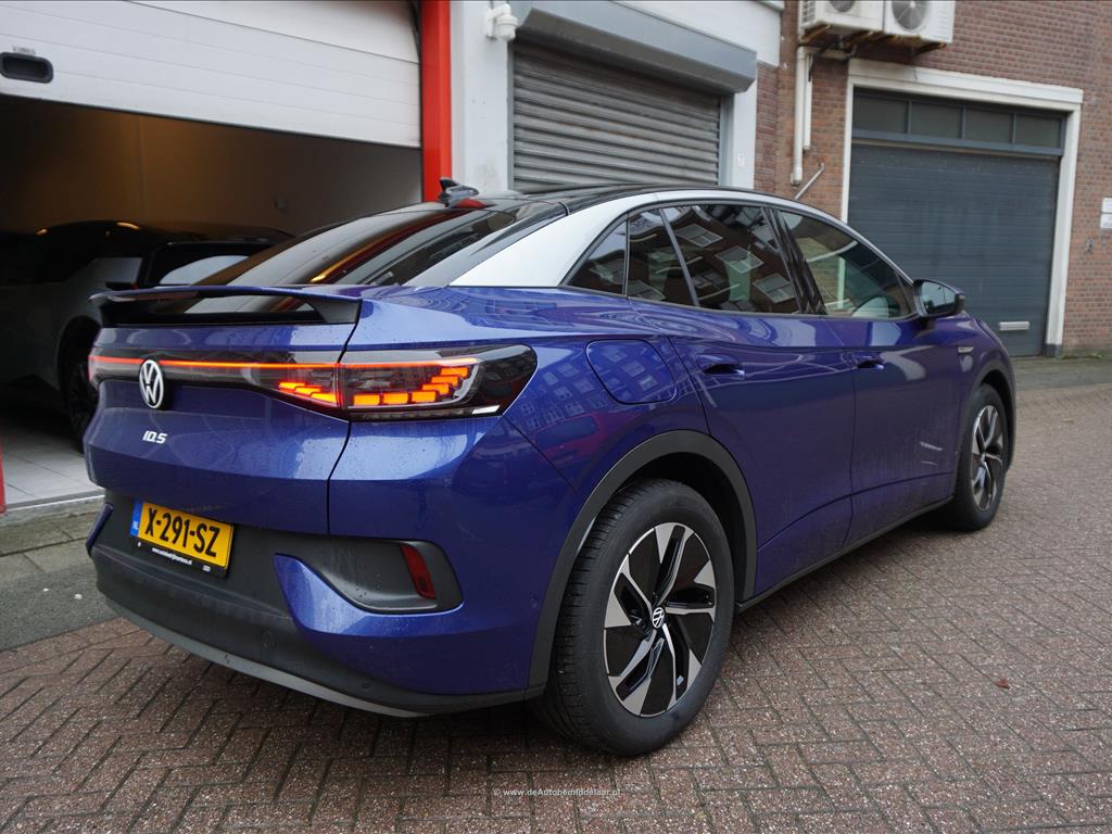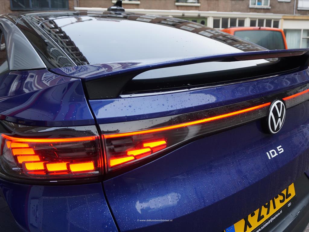 Rijkelijk uitgevoerde Volkswagen ID.5 77 kWh | Panoramadak | Adaptieve cruise control + lane departure met stuurcorrectie | MATRIX LED | 360 (TopView) camera | Lederen bekleding (velours middenbaan) | Sfeerverlichting | Stoelverwarming | Verwarmd stuurwiel | APPLE CarPlay/ Android Auto/ DAB audio/ Blue Tooth interface | Privacy glas achter | Dakspoiler | Afwijkende dakkleur (zwart) met zilver metallic daklijsten | Fabrieksgarantie 2-2028 | HV Batterij garantie 2-2031 of 160.000km | SOH 94.8% | achterbank in delen neerklapbaar, achterbank met armsteun en skiluik, achteruitrijcamera, alarm klasse 1(startblokkering), alarmsysteem, andere dakkleur, Anti Blokkeer Systeem, Anti doorSlip Regeling, Apple Carplay/Android Auto, armsteun voor, Autonomous Emergency Braking, bandenspanningscontrolesysteem, bestuurdersairbag, bestuurdersstoel in hoogte verstelbaar, binnenspiegel automatisch dimmend, Bluetooth, bots herkenning en activatie, buitenspiegels elektrisch inklapbaar, buitenspiegels elektrisch verstel- en verwarmbaar, centrale airbag voor, centrale vergrendeling met afstandsbediening, comfortstoel(en), connected services, cruise control adaptief, DAB, dakrails, draadloze telefoonlader, electronic climate control, elektrische ramen achter, elektrische ramen voor, Elektronisch Stabiliteits Programma, geluidsimulator, geluidsisolerend glas, hemelbekleding donker, hoofd airbag(s) achter, hoofd airbag(s) voor, interieur voorverwarming/(koeling), keyless entry, keyless start, kunstlederen interieurdelen, LED achterlichten, LED dagrijverlichting, LED koplampen, lichtmetalen velgen 19", multimedia scherm middel, multimedia-voorbereiding, navigatiesysteem, oplaadmogelijkheid, parkeersensor achter, parkeersensor voor, passagiersairbag, radio, regensensor, rijstrooksensor met correctie, ruitensproeiers/wisserbladen verwarmbaar, sfeerverlichting, spraakbediening, stuur leder, stuur multifunctioneel, stuur verwarmd, stuurbekrachtiging snelheidsafhankelijk, verkeersbord detectie, vermoeidheids herkenning, verwarmde voorruit, volledig digitaal instrumentenpaneel, voorstoelen verwarmd, warmtewerend glas, WiFi, zij airbag(s) voor, metaalkleur, dodehoek detectie, elektrisch bedienbare achterklep met sensorsturing, file assistent, rondomzicht camera, extra getint glas achter, grootlichtassistent, matrix LED koplampen, panoramadak, grootlichtassistent, matrix LED koplampen, armsteun achter, passagiersstoel in hoogte verstelbaar, velours bekleding.